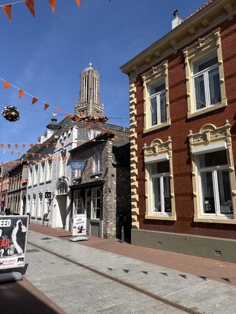 … En in de Maasstraat hangen de oranje vlaggetjes …